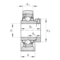 | 铸铁轴承座,带偏心锁圈的外球面球轴承,R 密封 |